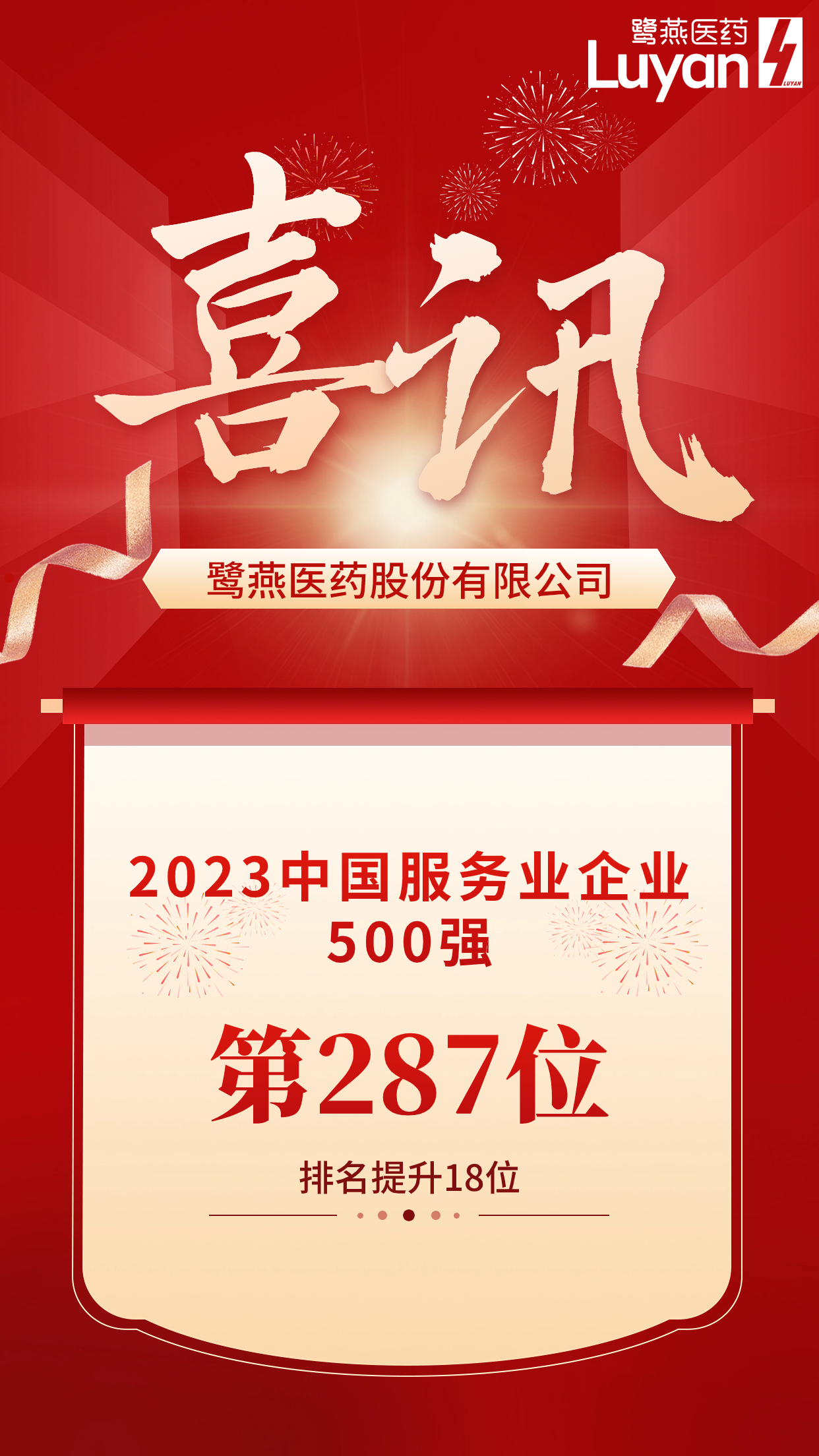 鷺燕醫(yī)藥榮列2023中國(guó)服務(wù)業(yè)企業(yè)500強(qiáng)第287位