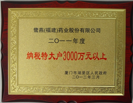 近日,廈門(mén)市湖里區(qū)隆重召開(kāi)2011年度納稅先進(jìn)企業(yè)表彰大會(huì),鷺燕(福建)藥業(yè)股份有限公司以超3000萬(wàn)的突出納稅貢獻(xiàn)榮獲“2011年度廈門(mén)湖里區(qū)納稅特大戶”稱號(hào)。