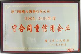 經(jīng)過層層選拔、評審,廈門鷺燕醫(yī)藥有限公司和廈門鷺燕大藥房有限公司雙雙榮獲了“2005-2006年度守合同重信用企業(yè)”稱號,這是政府權(quán)威部門對我集團合同管理工作的充分肯定。